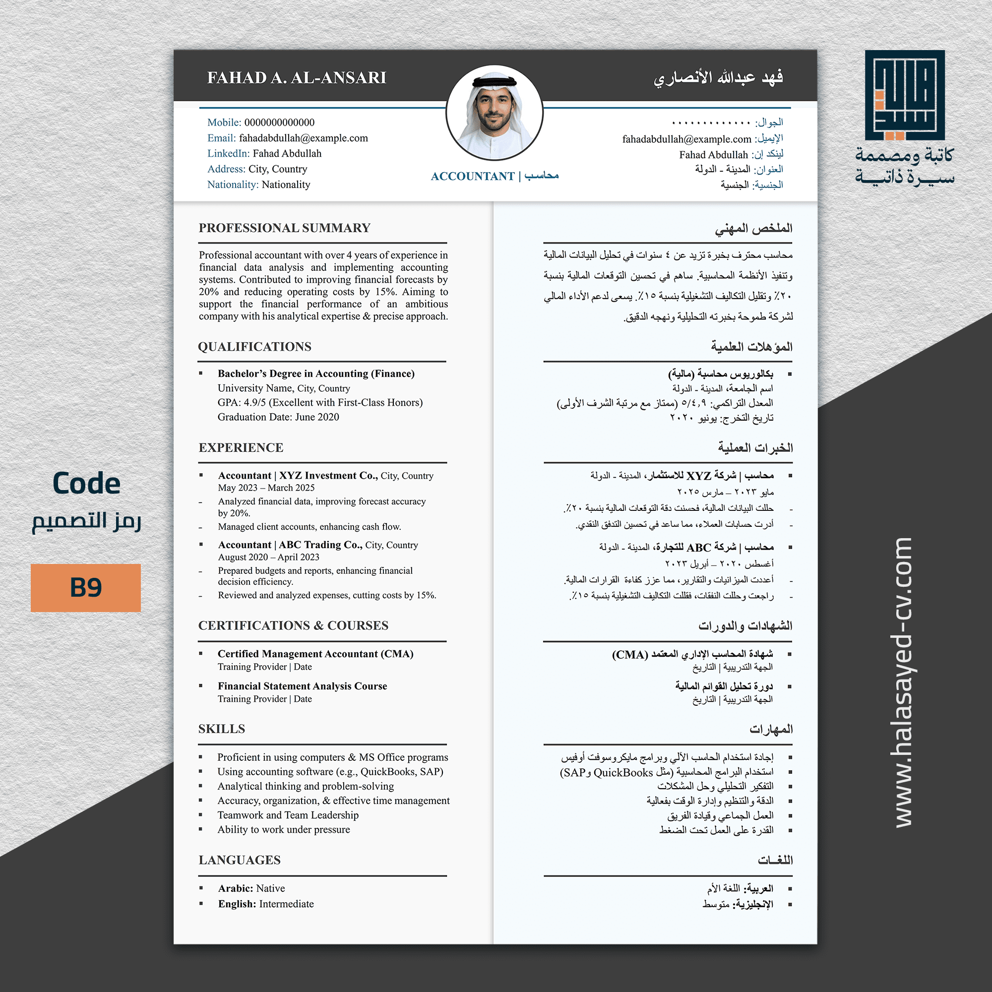 سيرة ذاتية ثنائية اللغة (عربي – إنجليزي)